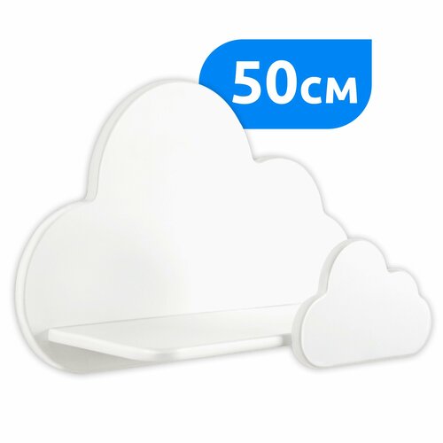 Полка настенная навесная детская деревянная для книг и игрушек MEGA TOYS Облако 50 см мебель для детского сада, комнаты, дома