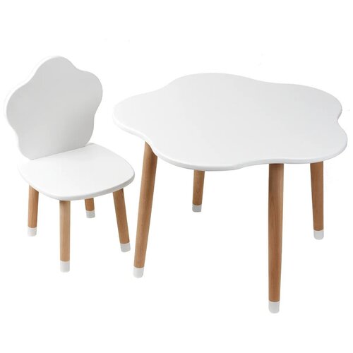 Детский стол и стул из дерева MEGA TOYS Облачко комплект деревянный столик со стульчиком / подарок на 1 годик девочке и мальчику