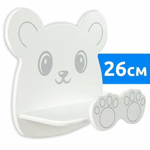 Полка настенная навесная детская деревянная для книг и игрушек MEGA TOYS Мишка 26 см мебель для детского сада, комнаты, дома
