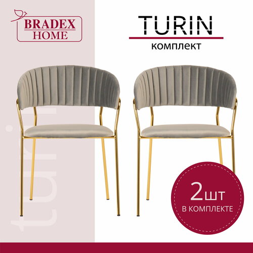 Стулья для кухни 2 шт мягкие велюр со спинкой Turin латте с золотыми ножками