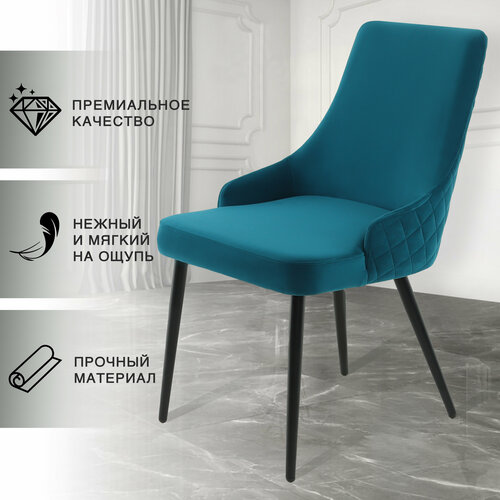 Кухонный стул с анатомической спинкой и мягким сиденьем, Морская волна велюр