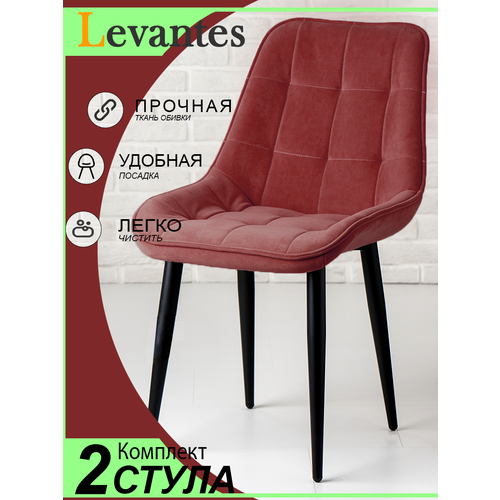 металлКомплект из 2 (двух) высококачественных стульев бренда Levantes станут отличным решением для каждого, кто ценит стиль и уют своего дома. Стулья дизайнерские на металлических ножках впишутся в интерьер дома или квартиры, а ценители качественной мебели покупают их в рестораны, бары и кафе. Бархатный на ощупь материал обивки - высококачественная, водоотталкивающая ткань класса "Ho