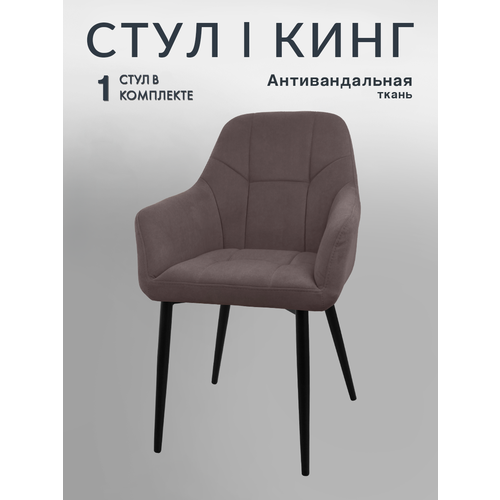 Стул кресло для кухни Кинг мягкий со спинкой в пепельно-коричневом цвете с черными ножками от LUSSOR