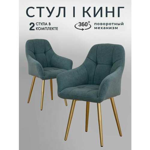 Стулья кресла для кухни Кинг мягкие со спинкой поворотные в Зеленом цвете с золотыми ножками от LUSSOR