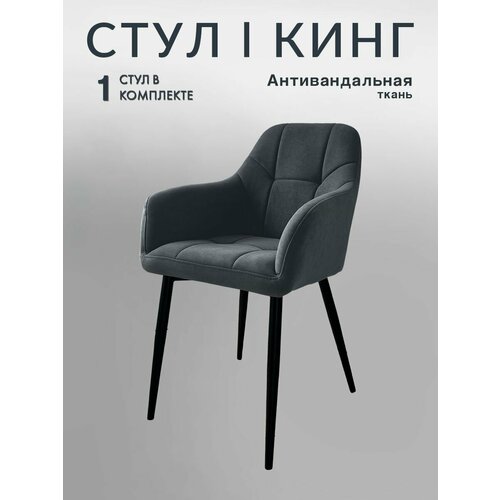 Стул кресло для кухни Кинг мягкий со спинкой цвет Графит с черными ножками от LUSSOR