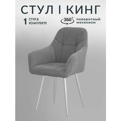 Стул кресло для кухни Кинг мягкий со спинкой поворотный в Сером цвете с белыми ножками от LUSSOR