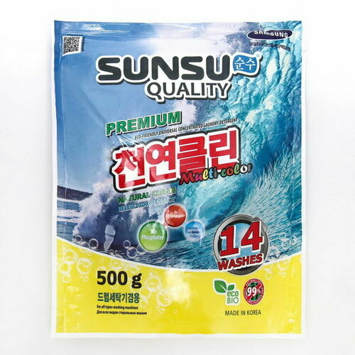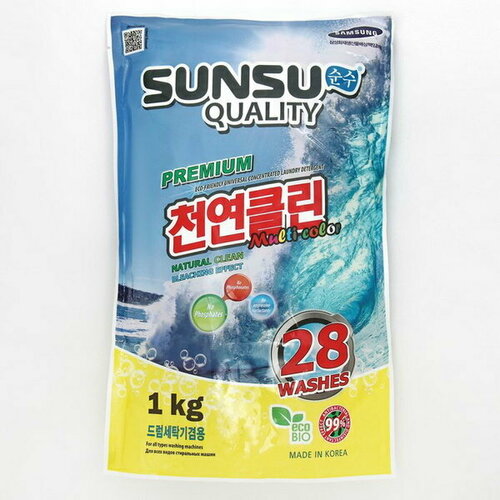 Sunsu Quality Multi Color Стиральный порошок универсальный концентрированный бесфосфатный для цветных 1 кг на 28 стирок в мягкой упаковке