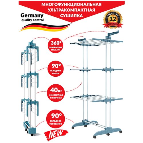 пластикСушилка iSottcom компактная напольная для белья в отличие от более дешевых аналогов имеет складывающееся основание, что позволяет хранить ее в сложенном виде за дверьми и в других узких нишах. Разработана в Германии и изготовлена под контролем немецкой компании Vymana GmbH из высококачественных материалов. Свежее сухое белье - легко с сушилкой iSottcom! Бельевая вертикальная сушилка имеет 6 сушильных зон, 6 складных полок и две дополнительные боковые планки для плечиков (7 вешалок для одежды с обеих сторон), что позволяет сушить до 40 кг белья -6 загрузок стандартной стиральной машины. Наша многофункциональная бельевая сушилка имеет простую и понятную инструкцию, легкая в сборке. Имеет полку для обуви, прочную конструкция, эмалированный каркас. Передвижную сушилку-трансформер можно установить к стене и откинуть рабочие поверхности только с одной стороны, не загромождая пространство это так удобно. Количество сушилок, участвующих в акции, ограничено. Сделай заказ сейчас!