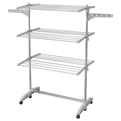 серыйОдежда и вещи после стирки нуждаются в качественной сушке. Поэтому сушилки для белья так незаменимы в быту. Сушилка для белья напольная складной конструкции прекрасно подойдет для сушки одежды, полотенец, для белья постельного и детских вещей. В условиях быта сушилка для белья вертикальная - самое оптимальное решение для повседневной сушки белья. Вертикальная сушилка для белья подходит для малогабаритных помещений. Такая сушка для белья отлично экономит пространство. Сушилка для белья оснащена надежным и удобным механизмом раскладывания, в складном виде сушилка для одежды не занимает много места. Напольная сушилка для белья очень проста в использовании. Достать и подготовить сушилку можно буквально за несколько минут. Складывается сушилка напольная также быстро. Сушилка для вещей имеет раскладные крылья. Общая длина сушильного полотна сушилки 15м. Напольную сушку удобно использовать на балконе, подойдет как уличная. Струны сушилок изготовлены из стали с антикоррозийным покрытием, продляющим срок службы сушилк