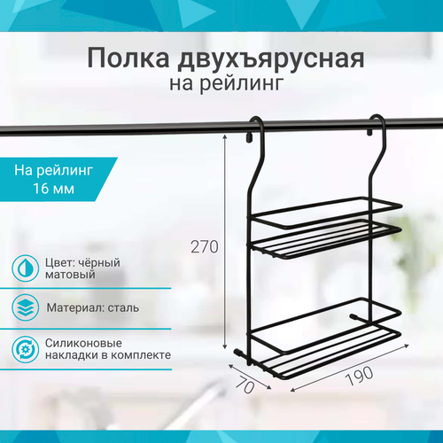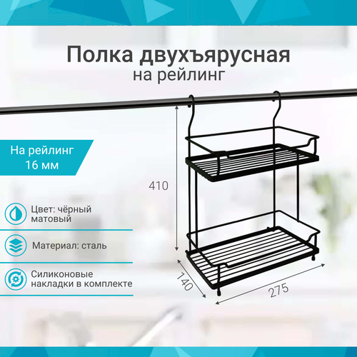 Навесная полка для специй на рейлинг 16мм цвет черный матовый