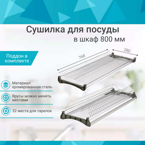 Главная Товары для дома Посуда Кухонные принадлежности Сушилка для посуды с поддоном, в базу 600 мм хром