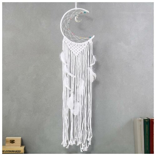 Ловец снов "Месяц в паутине" белые пёрышки и тесьма 75х17,5 см