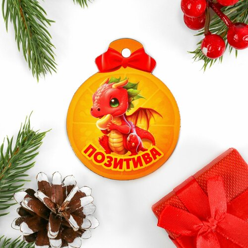 Магнит винил новогодний "Позитива!", дракон, бант, 6,5х7 см