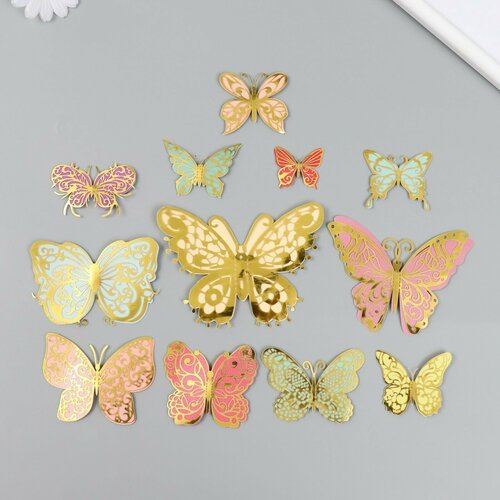 Бабочки картон двойные крылья "Ажурные. Нежные расцветки" набор 12 шт h 4-10 см на магните