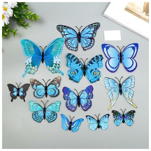 Магнит пластик "Бабочки голубые" набор 12 шт
