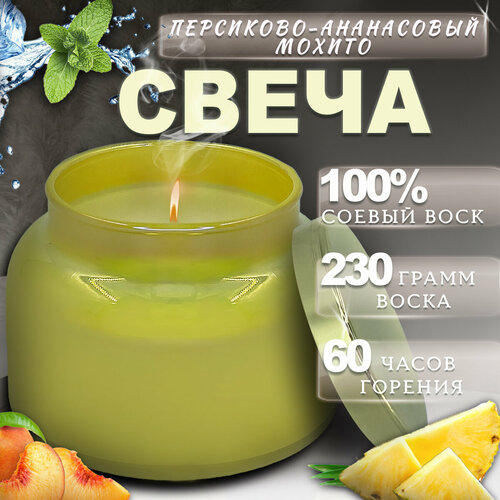 Свеча ароматическая "Персиково-ананасовый мохито" BLABAR, соевый воск, 230 ml.