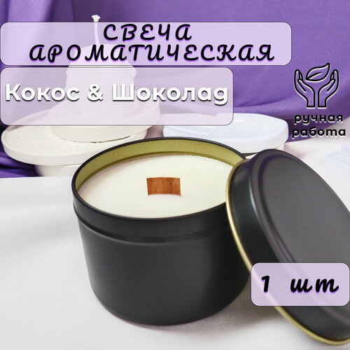 " Кокос & Шоколад ", свеча Ароматическая, Baklo&M, 100мл, 25 часов горения, 100% ЭКО, 1шт