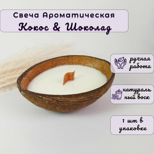" Кокос & Шоколад ", свеча Ароматическая в кокосе, Baklo&M, 90мл, 20 часов горения, 100% ЭКО, 1шт
