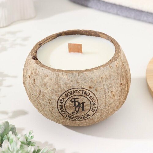 Свеча в кокосе ароматическая, белый чай, соевый воск, в коробке