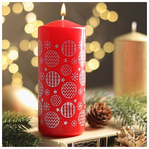 Свеча - цилиндр "елочные шары", 5х10 см, красная с серебром./В упаковке: 1