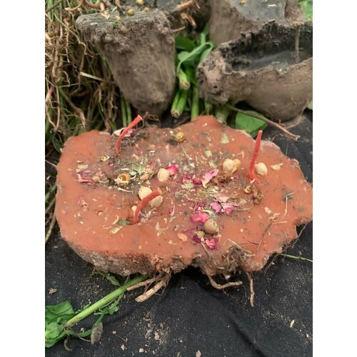 Важно: обязательно нужно ставить свечу в широкий подсвечник или огнеупорную ёмкость В свече много трав, пламя большое!
