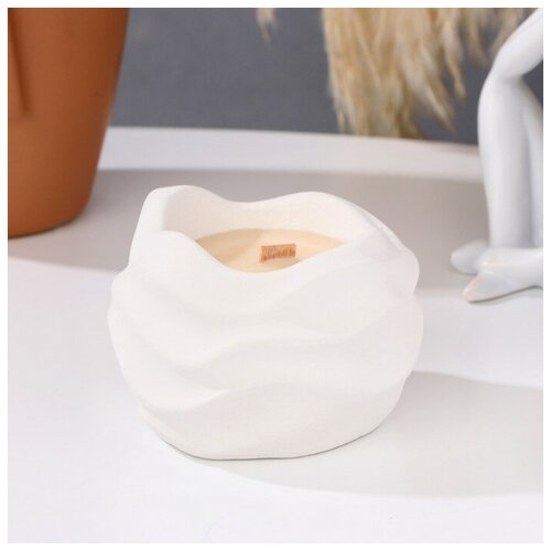 Свеча из соевого воска в кашпо "Волна", 9х6 см, белая