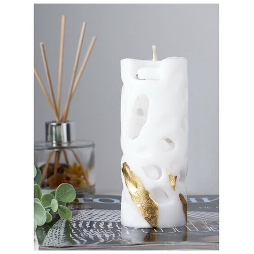 Богатство Аромата Свеча-цилиндр "Ажурная", 6х15 см, белая с поталью