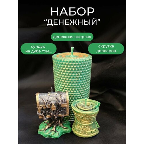 Свеча магическая программная зеленая из натурального воска фигурная с травами "Скрутка Долларов" деньги отовсюду