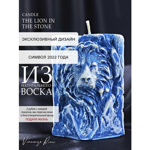 Свеча восковая , интерьерная, декоративная, подарочная, фигурная, натуральная, для подарка , ароматическая, новогодние свечи "Лев в камне" 1 шт синий
