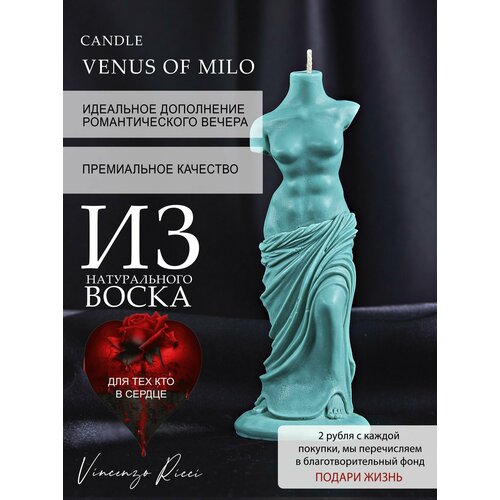 Свеча восковая, интерьерная, декоративная, подарочная, фигурная, натуральная, ароматическая, новогодний подарок, свеча "Венера Милосская" 1 шт тиффани