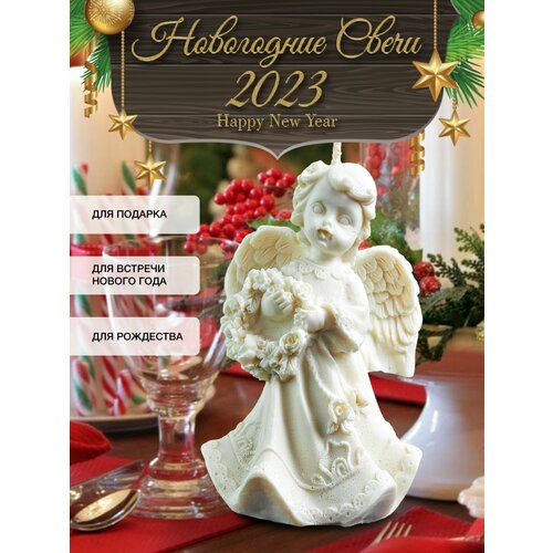 Свеча восковая , интерьерная, декоративная, подарочная, фигурная, натуральная, ароматическая, новогодние свечи "Ангел с венком" 1шт бежевый