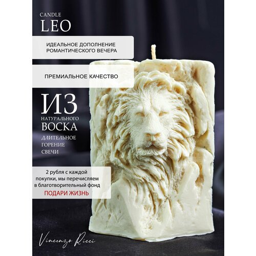 Свеча восковая , интерьерная, декоративная, подарочная, фигурная, натуральная , ароматическая, новогодние свечи "Лев в камне" 1 шт бежевый