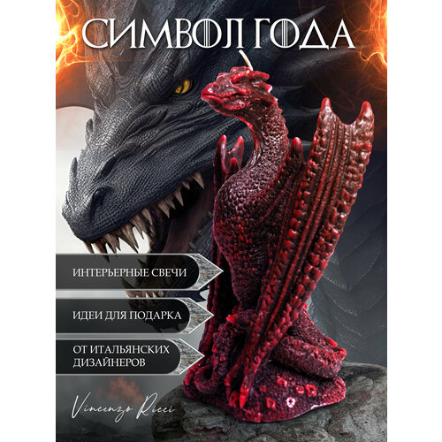 Свеча новогодняя дракон, символ года, подарочная интерьерная
