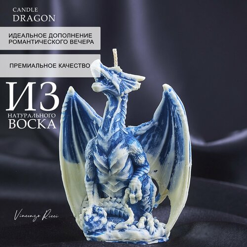 Свеча восковая , интерьерная, декоративная, подарочная, фигурная, натуральная, для подарка , ароматическая, новогодние свечи "Дракон" 1 шт сине-белый