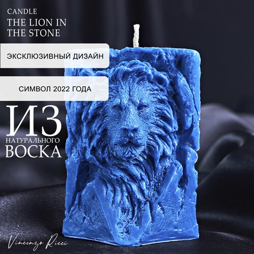 Свеча восковая , интерьерная, декоративная, подарочная, фигурная, натуральная , ароматическая, новогодние свечи "Лев в камне" 1 шт сине-белый