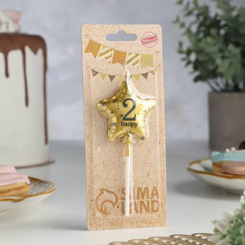 Свеча в торт на шпажке "Воздушный шарик. Звезда", цифра 2, 5.5 см, золотая