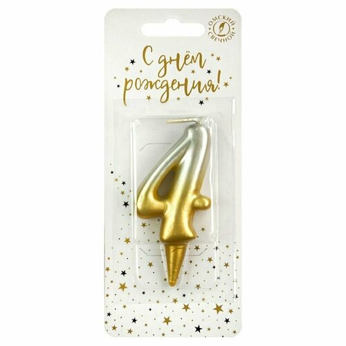 Свеча тортовая цифра 4 "Золото-Серебро"