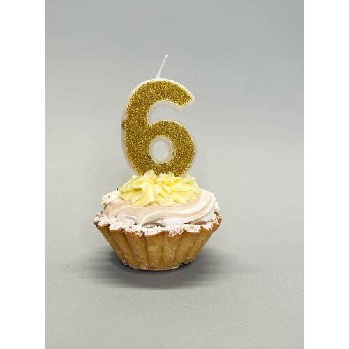 Свеча -цифра "6" Золотая Глиттер 6см/G