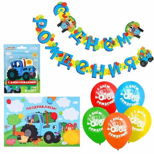 Синий трактор Набор для праздник. Гирлянда, плакат, свеча, шарики 5 шт "Синий трактор"