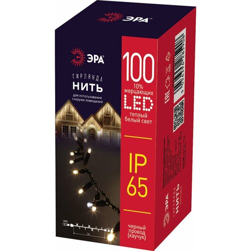 Светодиодная новогодняя гирлянда ЭРА ERAPS-NK10 нить 10 м тёплый свет 100 LED