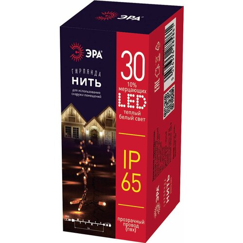 Светодиодная новогодняя гирлянда ЭРА ERAPS-NP3 нить 3 м тёплый свет 30 LED