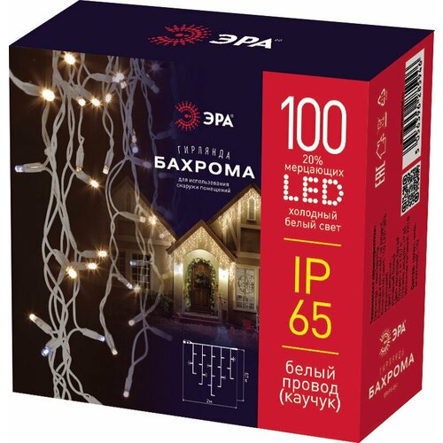 Светодиодная новогодняя гирлянда ЭРА ERAPS-BK1 бахрома 0,7x2 м холодный белый свет 100 LED