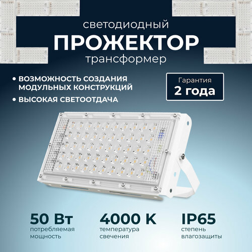 Светодиодный прожектор-трансформер с дневным белым цветом свечения 4000К / 4000Лм / 50Вт / IP65 / 220В-240В/50Гц / 107х212х27мм / белый