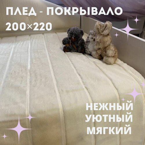Плед-покрывало мех кролика 1.5м*2м, кремовое буклированное "волна"