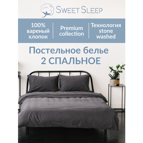 Комплект постельного белья Sweet Sleep 2 спальное вареный хлопок, графит клетка