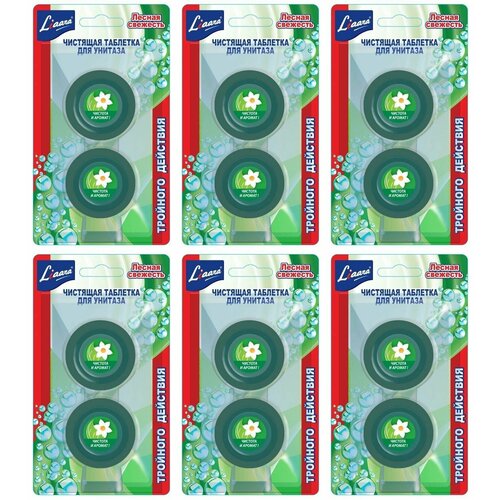LIAARA Чистящие таблетки для унитаза Лесная свежесть, 2 шт х 50 г, 6 уп