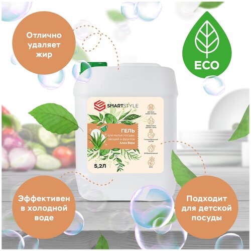 Гель для мытья посуды, овощей и фруктов 5,2 л. SMARTSTYLE Алоэ Вера