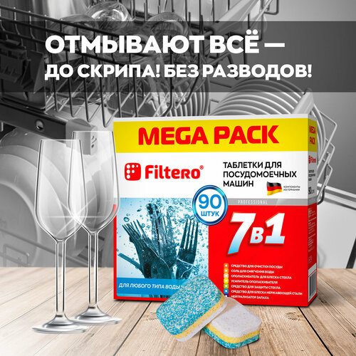 Таблетки для посудомоечной машины Filtero 7 в 1 таблетки, 90 шт., 4.45 л, коробка