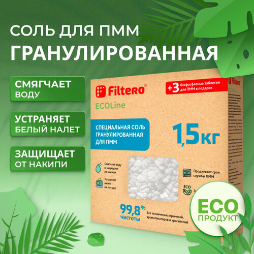Соль для посудомоечных машин ПММ специальная гранулированная 1,5 кг+3 табл. Filtero ECOLine