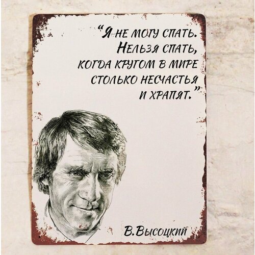 Табличка с цитатой Высоцкого Нельзя спать, когда кругом в мире столько несчьстья и храпят, металл, 20х30 см.